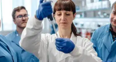 hands with gloves pipetting cells