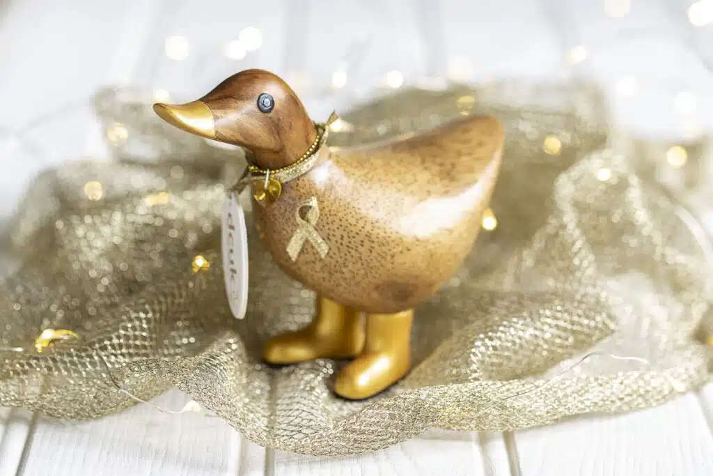 Amongst a long list of other charities, DCUK donate from a variety of their collections to charities close to their hearts, one of them being Children with Cancer UK. For every Limited Edition Golden Ducky bought, £4 is donated to charity. Each ducky is hand carved and hand painted and unique and special in their own way. All products can be ordered online To get your special edition ducky with a gold ribbon in support of Children with Cancer UK, click here. We hope you will help us to support this great cause!