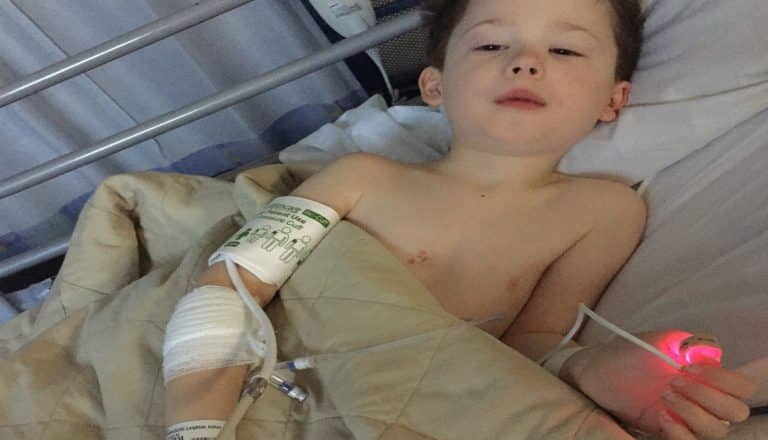 We started chemotherapy with no idea how it would affect him or if it would work because the type of brain tumour he had, the percentage of it working was low. Leighton was administered three types of chemotherapy which all came with terrible side effects. The worst being the nose bleeds, where on one occasion he was bleeding for over three hours and had to be taken by ambulance to the hospital. All of this going on and he continued to have all his rehabilitation. It wasn’t until the third round that Leighton became quite unwell firstly with shingles then getting mucositis which affected all of his mouth, right through to his bowels. This was the time we were not sure if he would be coming home. A few days later there were issues with his magnesium and calcium levels along with his heart beating irregularly. With constant spikes in temperature and being unwell we spent most of our time in isolation. The team on the ward were amazing, keeping him entertained with the play therapists, along with all the rehabilitation.