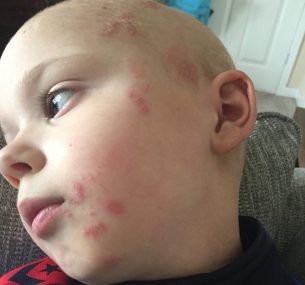 After just over a month, we were allowed to go home and then on 29 March 2019, we started 30 rounds of high frequency radiotherapy on Leighton’s head neck and spine. We were told that he would then require stem cell harvesting and four strong rounds of chemotherapy. Leighton had two rounds of stem cell harvesting which they used his own stem cells to help him recover during chemotherapy treatment. We had a target that we didn’t meet and had to hope we had enough. He also had to have further surgery to have his portacath inserted in his chest area in preparation for his chemotherapy.