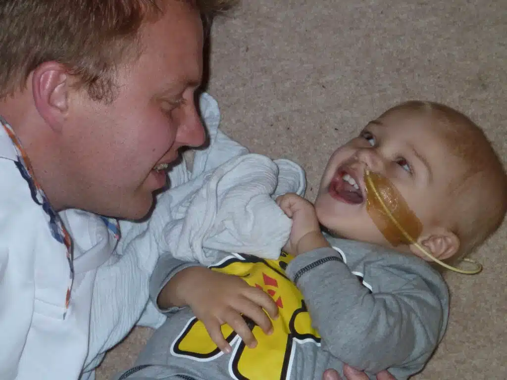 Sebastian had more scans and then the chemo started. We didn’t know how he would respond. It went okay but I spent the whole three days crying because our baby boy looked so poorly. He was always such a happy lively little lad, even with this tumour inside him, but the chemo wiped him out and he slept for two days.