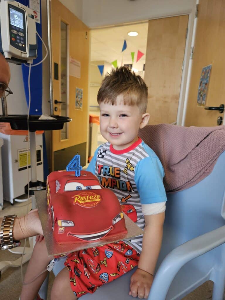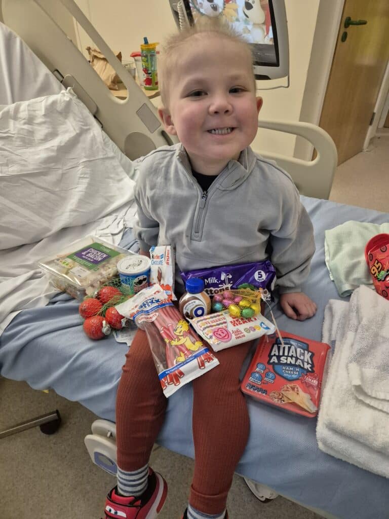 During the journey, especially right at the beginning – talk to the other families. The parents of other children who are going through the same or similar. We found comfort in talking to other mums and dads who were maybe ahead of your journey, but they’ve been there, it really does help. Take all the help that is offered and given. If people ask you what you need, let them cook for you so it’s one less thing to worry about. All the small things too. Often, people will have nothing when they are first taken onto the ward, a bag with a few small bits at most. One of the best things Teddy received in these first few days was a bag – full of essential items you will inevitably need but don’t have with you.